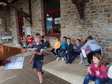 Ils ont également travaillé sur ce thème en EMC (drapeaux des pays avec les phryges) , en lecture ( Les jeux grecs antiques ) et en arts visuels (Les anneaux olympiques). La matinée s’est achevée par une remise de diplômes et par quelques douceurs bien méritées.